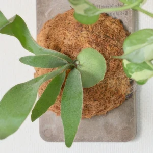前からうちにあるフペルジア・ゴエベリーの両隣に新入りプランツを並べて飾りました。