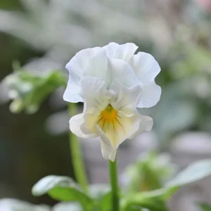 花色はほんのり黄味を帯びたアイボリーカラーで、ガーデンシクラメンにしては花が大きいです。