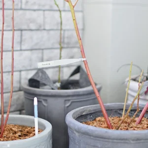 今年の冬囲いはとりあえずこれでおしまい。一応、この先気温が極端に下がるようなら、鉢にアルミシートを巻くなど追加で対策することも考えています。