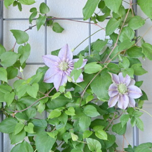 今シーズンはオベリスクに巻いてみました。去年の一番花より花数が少し増えた分、花の大きさは若干小さくなりました。